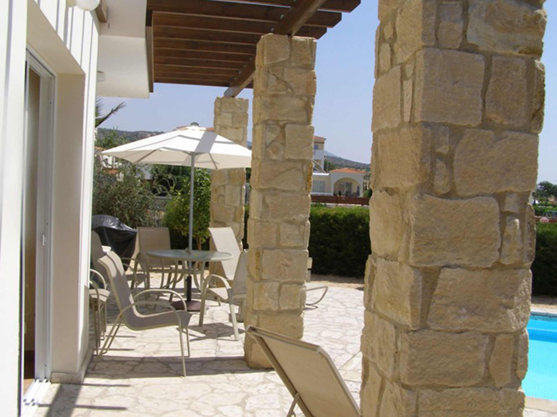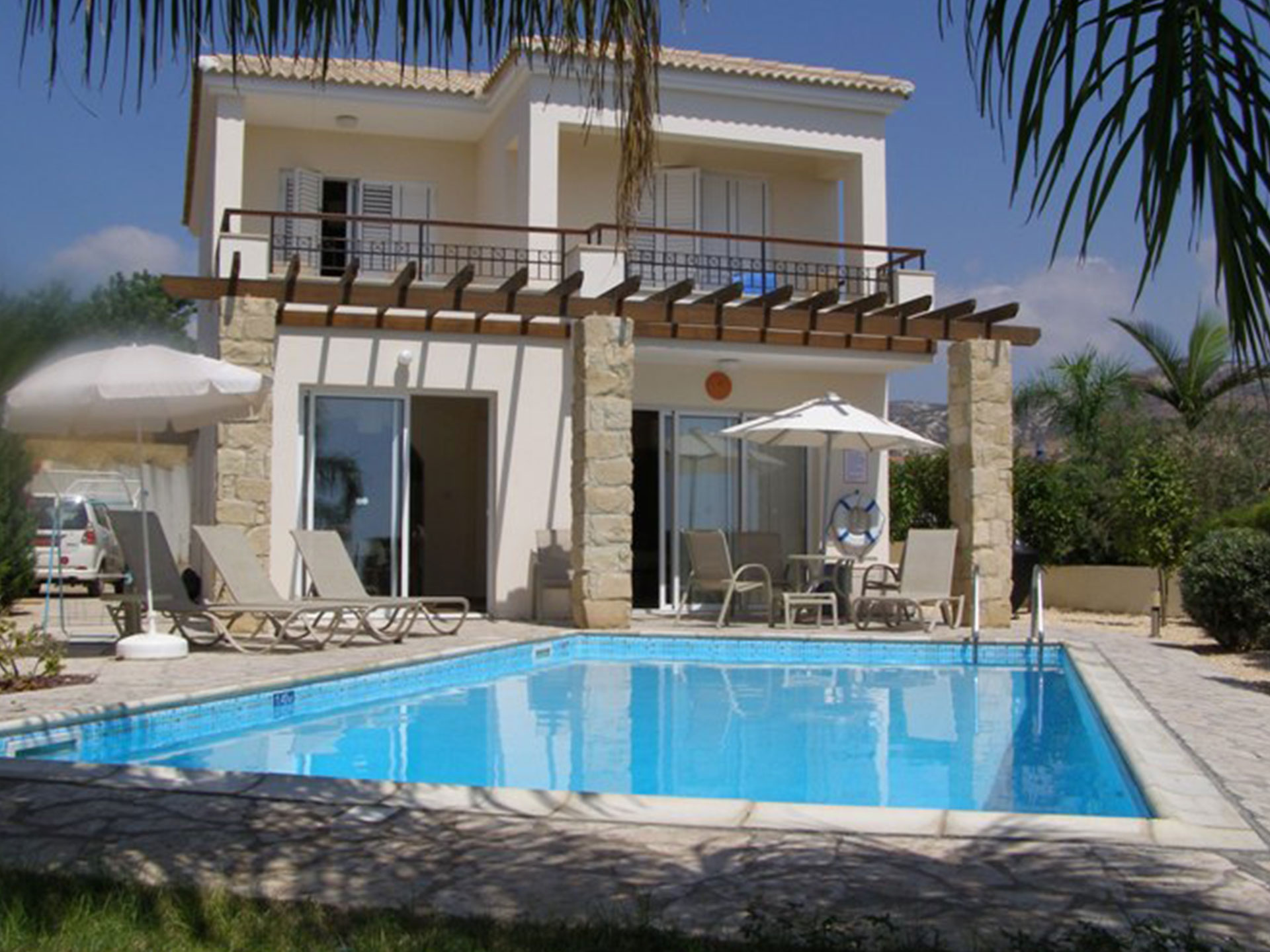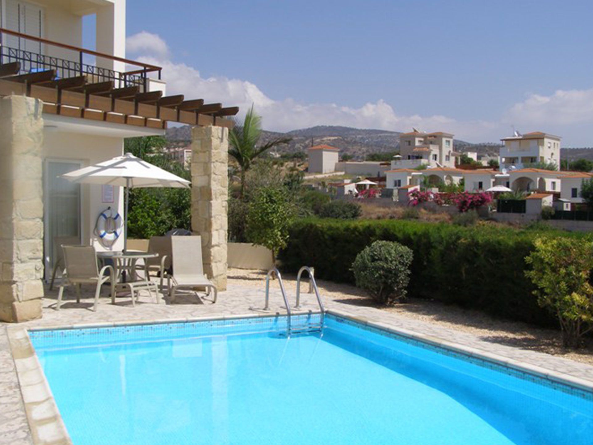 Hillcrest Villa is in a quiet no-through road, located in Peyia with beautiful views of the mountains and sea. Furnished to a high standard with a private garden and pool affording privacy and peace. A sun terrace with views down to the coast of Paphos and Coral Bay.