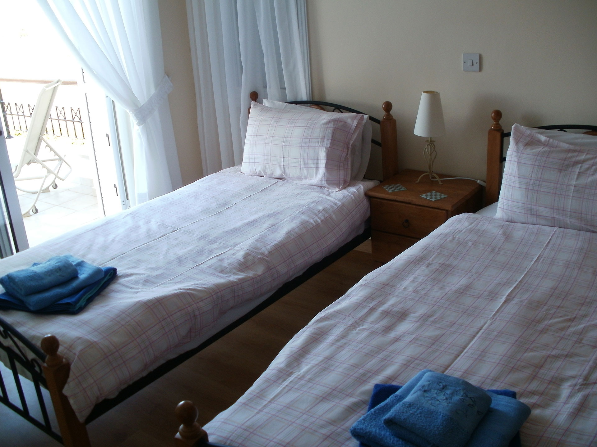 Also downstairs you have a bathroom and the third bedroom which consists of twin beds.