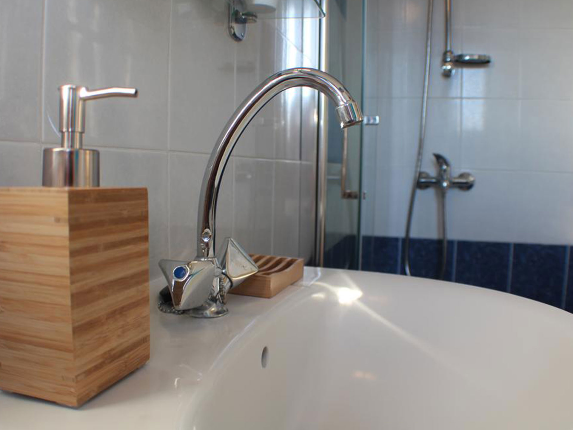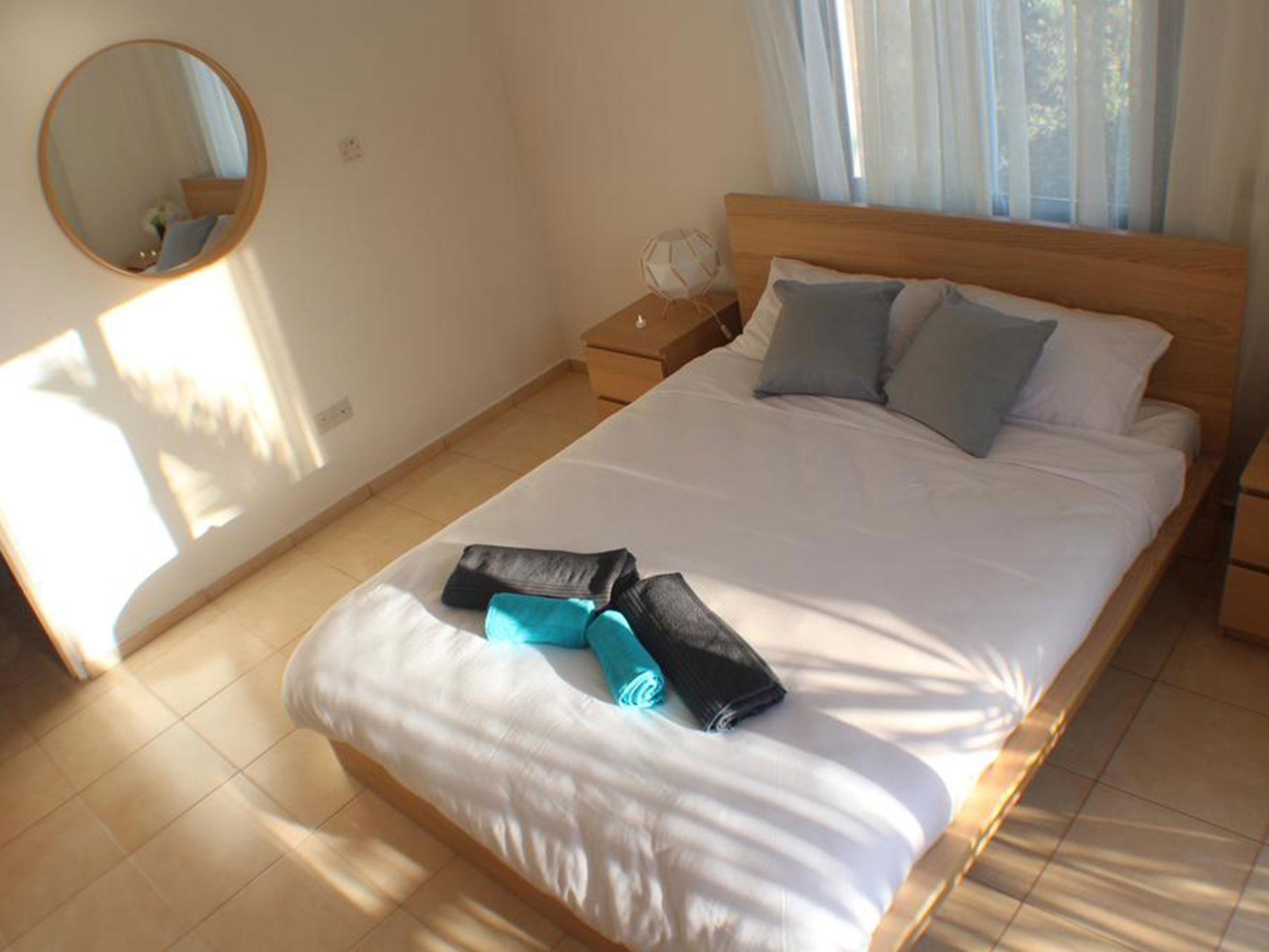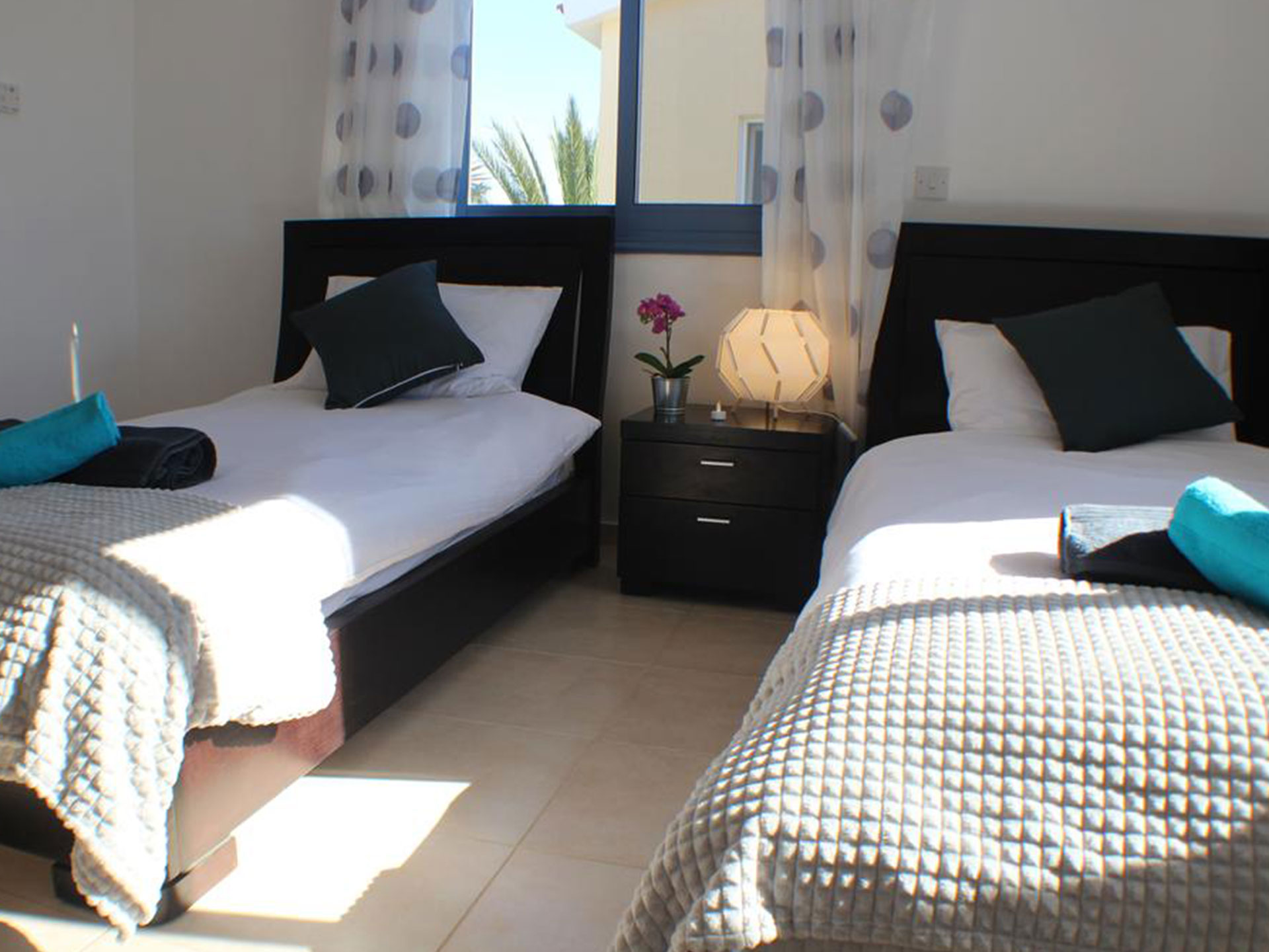 Upstairs has 3 good size bedrooms with plenty of wardrobe space and all are air conditioned. The two double bedrooms have patio doors leading to the outside balcony and the twin room consists of an ensuite. The main bathroom is shared by the other two rooms.